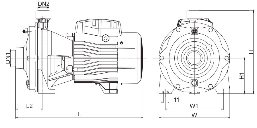 | مدل | DN1 | DN2 | L | L1 | H | H1 | W | W1 |