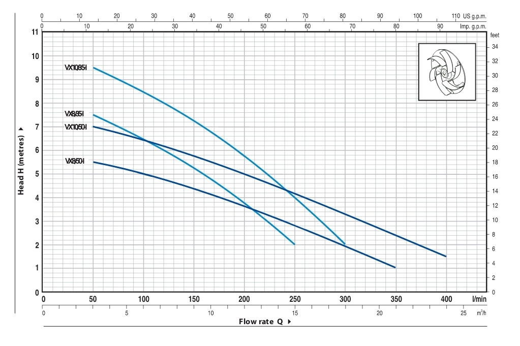 مشخصات فنی پمپ لجن کش پدرولو سری VX شامل موارد زیر است: