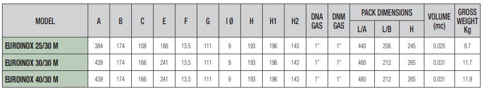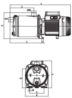 جدول ابعاد و اندازه پمپ آب 0.75 اسب داب مدل EUROINOX 40/30 M