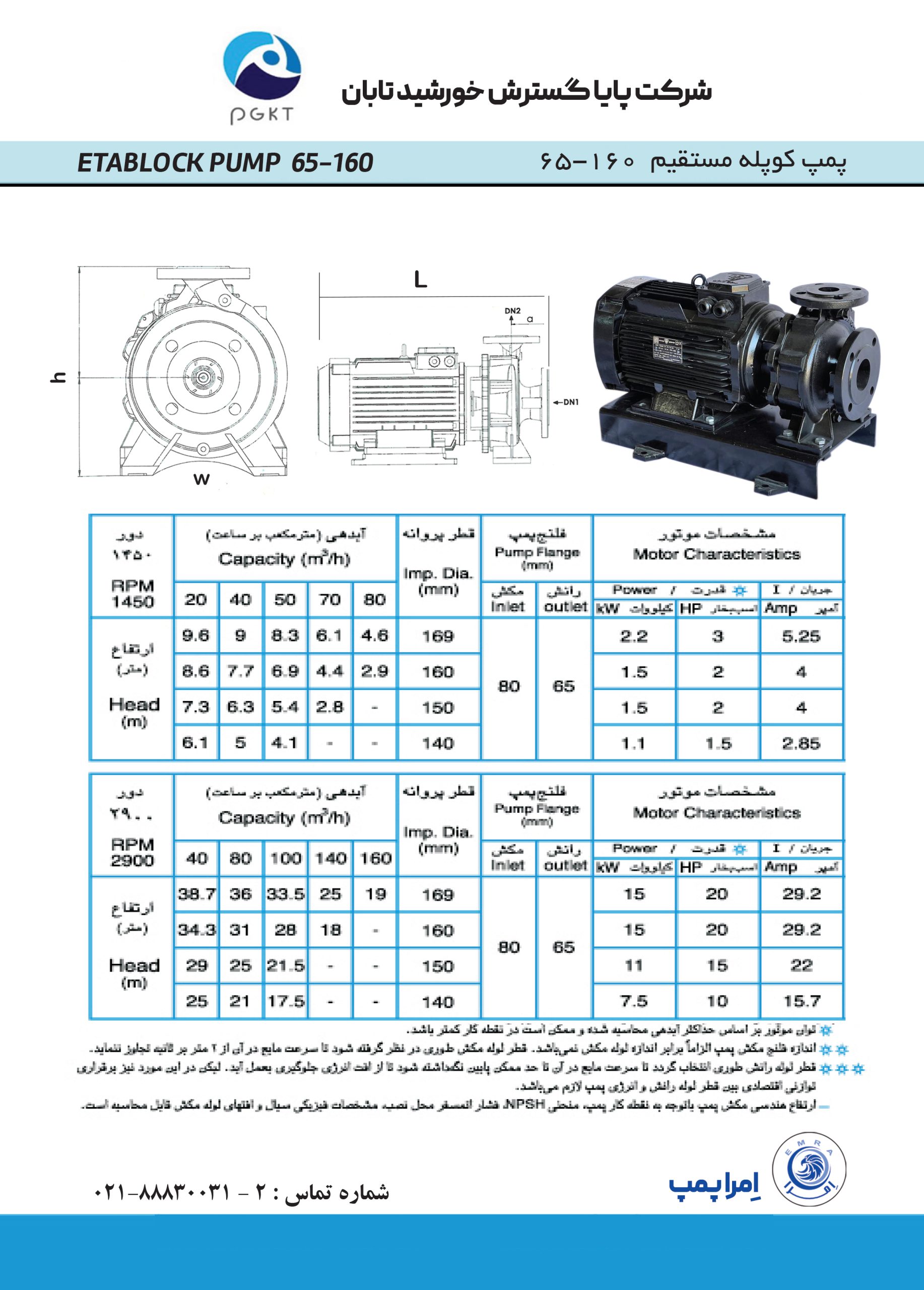 الکتروپمپ اتابلوک 2900 دور امرا پمپ سری 160-65 با توان 7.5KW تا 15KW جهت آبرسانی – آتش نشانی – صنعتی – کشاورزی
