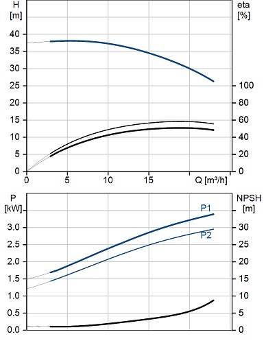 - هد: حداکثر هد این پمپ 37.7 متر است، به این معنا که میتواند مایعات را تا این ارتفاع متر پمپاژ کند.