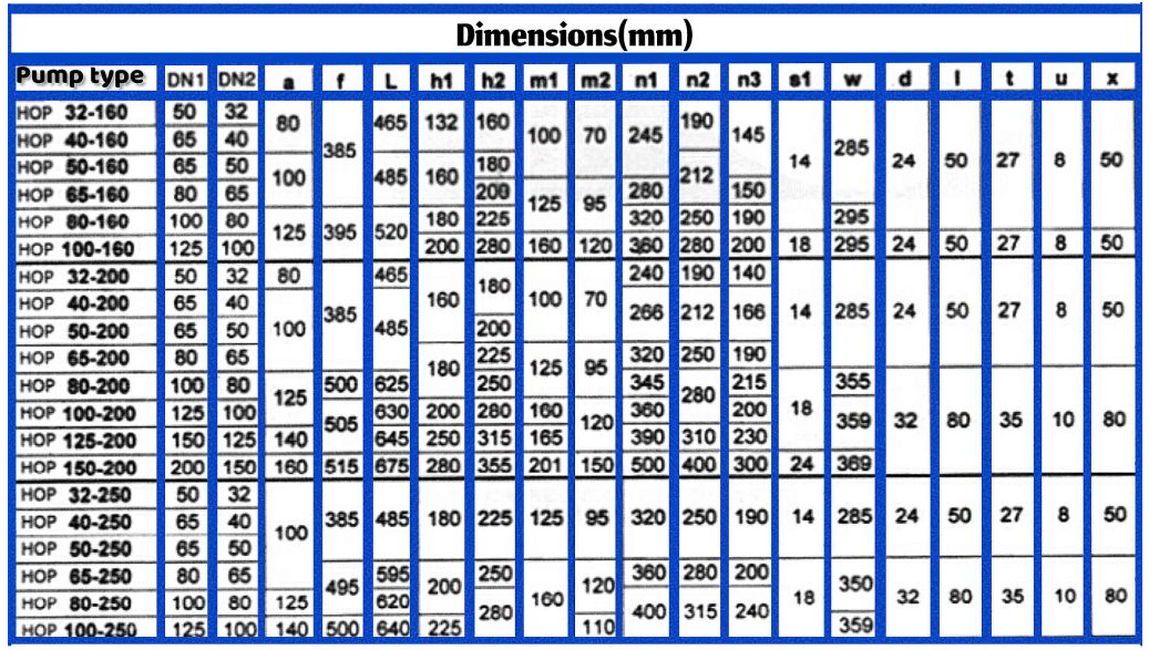 پیش از خرید پمپ صنعتی از نوع روغن داغ پمپیران مدل hop 65-200 لازم است تا از مشخصات دقیق آن مطلع شوید. این پمپ با دور 1450 در هر دقیقه دارای توان مورد نیاز 1.5 کیلو وات تا 4 کیلو وات بوده و به بازدهی 10 متر مکعب بر ساعت تا 50 متر مکعب بر ساعت نیاز دارد. علاوه بر اینها، حداکثر ارتفاع این پمپ روغن داغ پمپیران از 6 متر تا 15.7 متر متفاوت است و قطر پروانه آن نیز از 161 میلیمتر تا 214 میلیمتر متغیر میباشد.