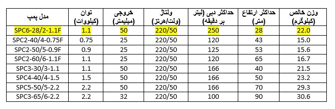 پمپ کفکش استریم تک فاز 2 اینچی سری SPC6-28/2-1.1F