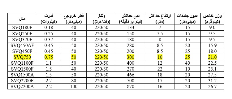 محصولات مشابه پمپ کفکش سری SVQ750