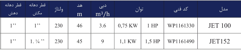- مدل پمپ: JET100